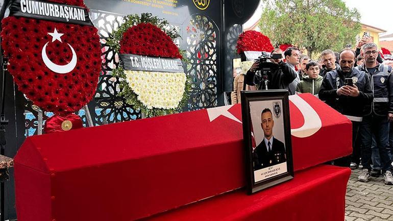 Şehidin askeri üniformasını giyen eşi Sinem Karakuş da gözyaşları içinde Türk bayrağına sarılı tabutuna sarıldı.