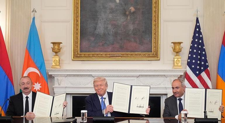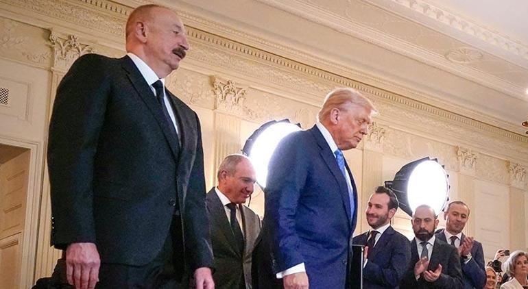 ABD Başkanı Trump, Beyaz Saray'da düzenlenen barış zirvesinde, Azerbaycan Cumhurbaşkanı Aliyev ve Ermenistan Başbakanı Paşinyan'ı ağırladı. Trump ile Aliyev ve Paşinyan, ikili görüşmelerinin ardından aynı masada yan yana oturarak ortak basın toplantısında kameraların karşısına çıktı.