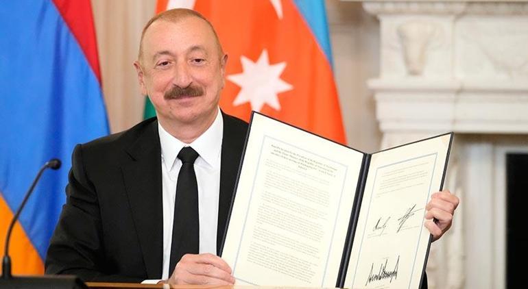 Trump'ın Asya, Afrika ve Güney Kafkasya'daki çatışmaları kısa sürede sona erdirdiğini söyleyen Aliyev, imzalanan ortak bildirinin yeni bağlantı hatları oluşturacağını, yatırımlar, refah ve istikrar için çok sayıda ülkeye yeni fırsatlar sunacağını vurguladı.