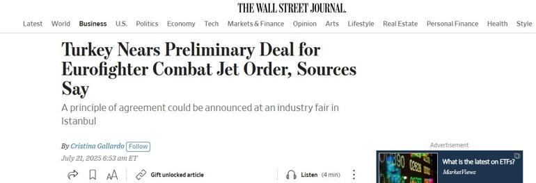 SON DAKİKA: EUROFIGHTER TÜRKİYE ANLAŞMASI: WSJ İDDİASI: ANLAŞMA BU HAFTA İSTANBUL'DA BİR FUARDA DUYURULACAK!
