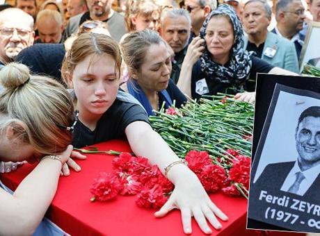 Tabutun başında eşinin kocaman bir kalbi olduğunu kaydeden Nurcan Zeyrek kızları için yaşamaya ve dik durmaya devam edeceğini söyledi. Ferdi Zeyrek'in ikiz kızları Elif ve Zeynep ise ellerindeki oyuncaklarla babalarının tabutunu öptü.